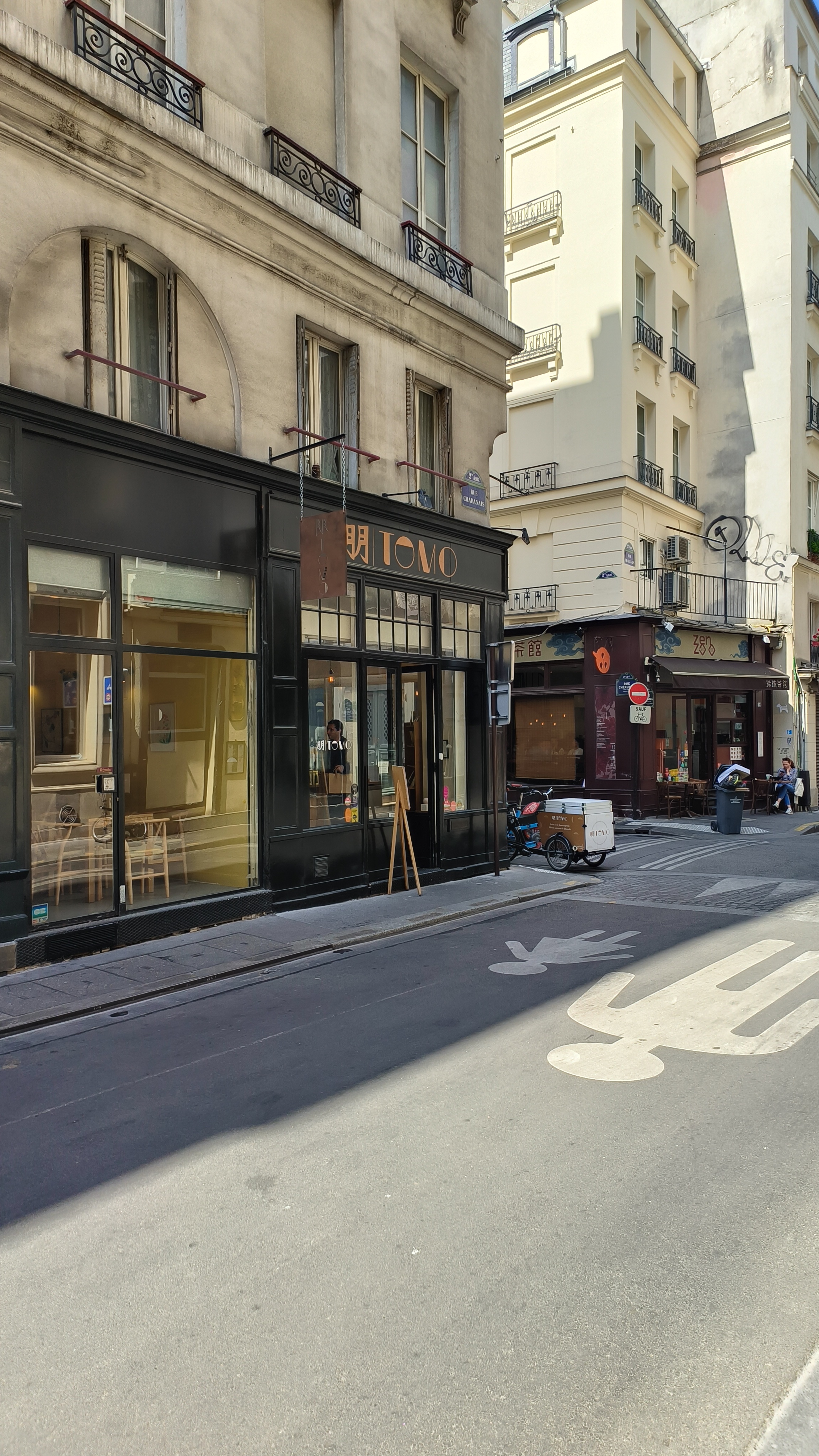 C'est la première fois que j'allais chez Tomo cette après-midi et j'ai passé un excellent moment entre amis. Nous avons pris du chocolat chaud au Soba (un chocolat un peu amer, très epais, vraiment un excellent chocolat si vous aimez le chocolat un peu amer), ainsi que deux pâtisseries, une tarte au citron pour goûter un Dorayaki franco-japonais qui s'est avérée être une excellentissime crème au citron bien acidulée sur une sorte de pancake, ainsi qu'un Dorayaki totalement japonais, un gâteau avec une ganache matcha chocolat blanc et crème de haricots rouges. Le tout est très très raffiné et c'est un endroit où l'on prend extrêmement plaisir à papoter entre amis ❤️