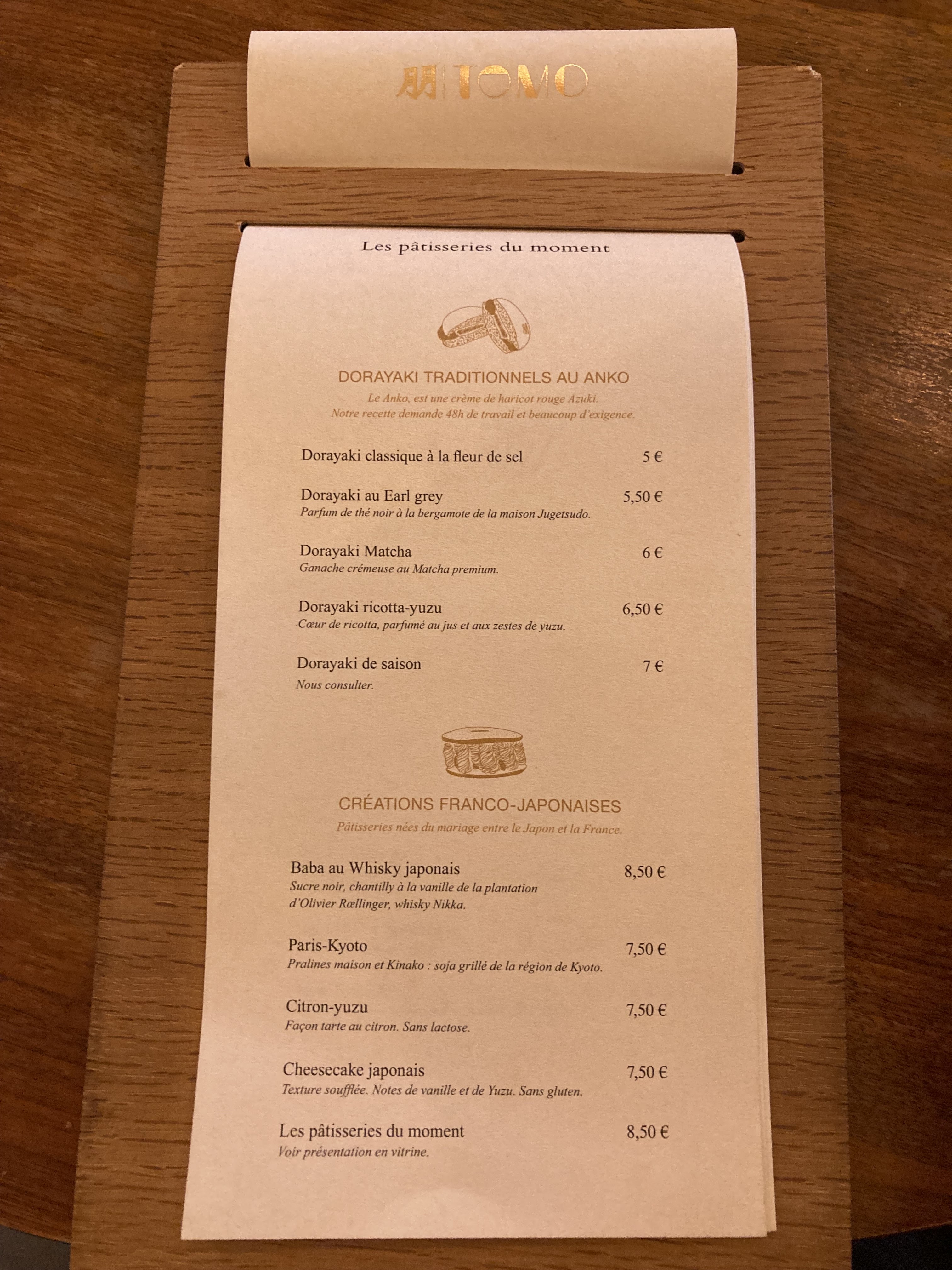 Posté le 04/03/2023 à 18:09"Leurs spécialités sont les dorayaki (pancakes japonais avec des haricots rouges) qui sont fait sur place à la demande. Ils font également d’autres desserts qu’ils vendent en vitrine qui sont très bons accompagnés d’un thé. L’endroit est très calme et cosy, il y a 2 salles et la déco est trop mignonne et assez minimaliste. La pâtisserie Tomo fait aussi beaucoup de collaboration avec des associations et des artistes pour certains événements (comme pour octobre rose). Mon préféré reste le classique même si ceux avec des goûts rajoutent qqc. Le thé que je prend en général n’est pas très fort et comme j’adore le thé, ça passe tout seul avec la pâtisserie. L’endroit est vraiment sympa et apaisant mais je trouve que ça reste assez cher si c’est juste pour manger des dorayaki et partir, autant le prendre à emporter ou alors rester un bon moment avec des amis à papoter autour du thé. ❌ Tickets restos"