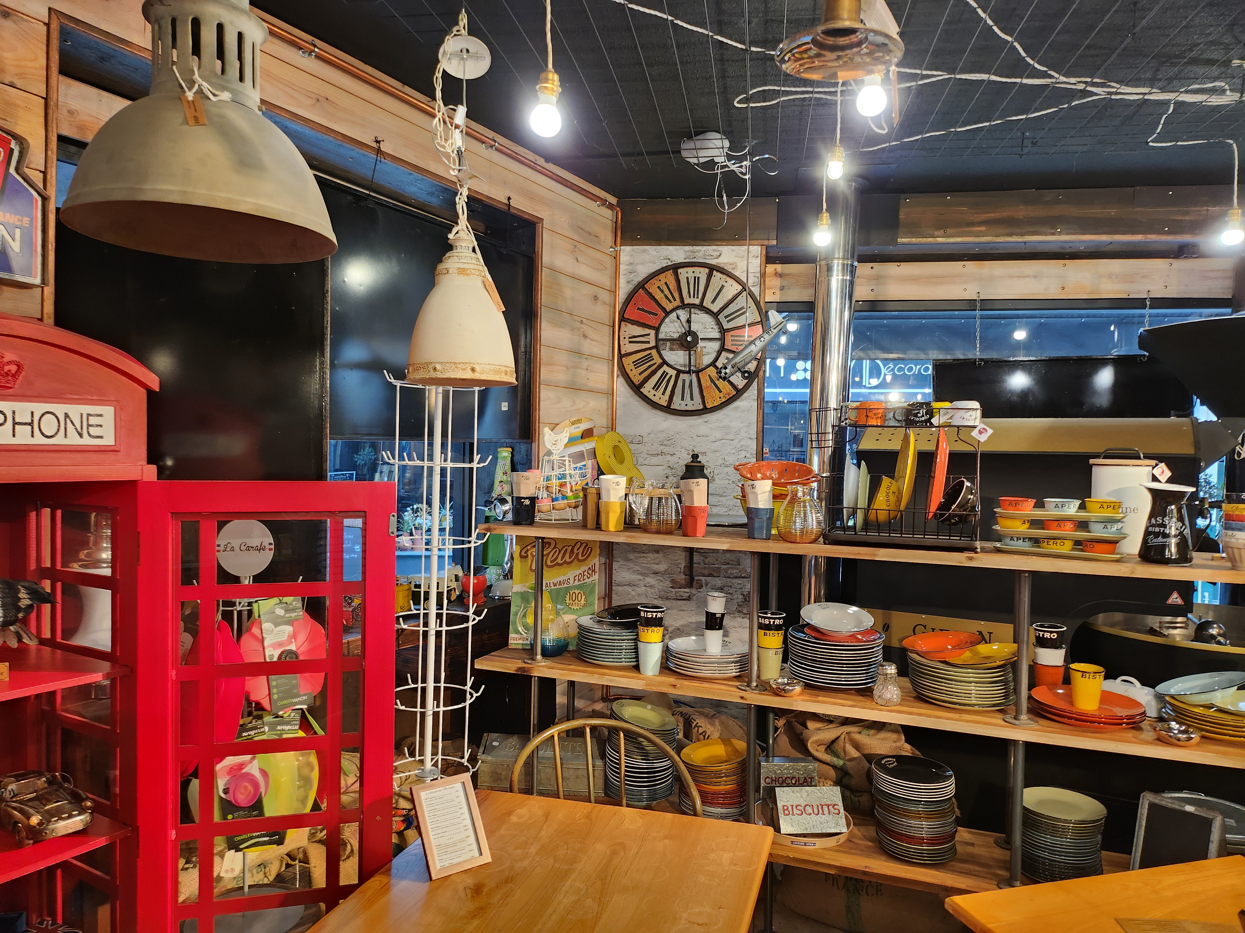 Une ambiance sympathique avec un design industriel et old school . Un service et un personnel de qualité. Une très grande variété de thés, infusions et café excellents. Je recommande fortement 😊